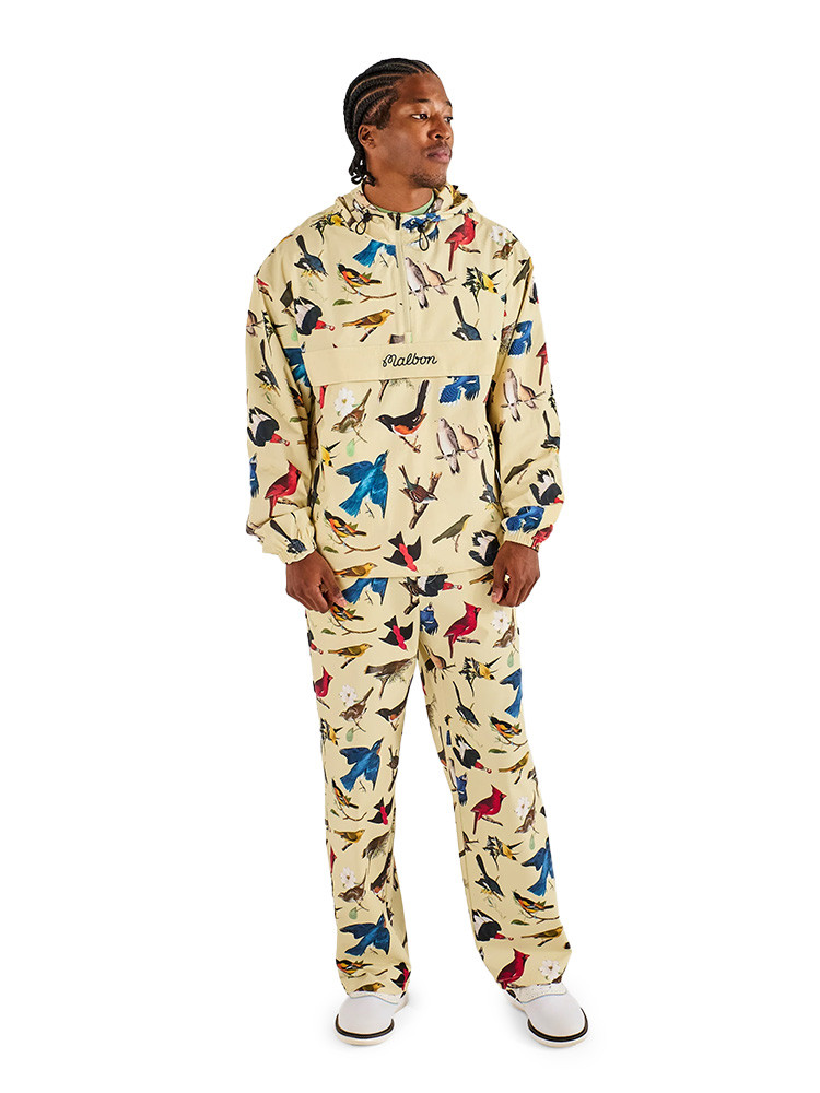 The Malbon Birds of Georgia Ridge Anorak (Bird Print) delivers functional protection in a relaxed, sport-driven silhouette. Constructed from a lightweight wind-resistant fabrication, it offers comfortable coverage when conditions shift while maintaining breathability and freedom of motion. Seasonal Birds of Georgia graphics introduce depth and visual character, giving the outer layer a distinctive presence on and off the course.